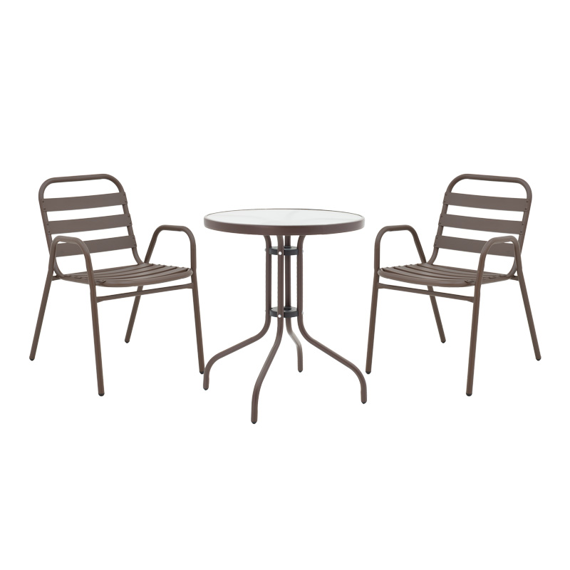 Τραπεζαρία Watson-Sussie pakoworld σετ 3τεμ μέταλλο καφέ-γυαλί Φ60×70εκ