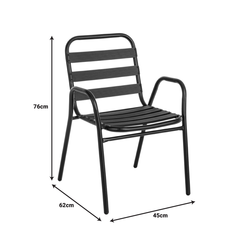 - Σταθερός σκελετός από μέταλλο εξαιρετικής ποιότητας με αντοχή σε φθορά και χρόνο, ενώ τα κομμάτια έδρας και πλάτης είναι κατασκευασμένα από φέτες αλουμινίου. Το μέταλλο παρέχει ανθεκτικότητα και σταθερότητα, ενώ οι φέτες αλουμινίου προσθέτουν ελαφρότητα και μια μοντέρνα αίσθηση στον σχεδιασμό. Η πολυθρόνα αυτή είναι ιδανική για χρήση σε εξωτερικούς χώρους, καθώς η ανθεκτικότητα στις καιρικές συνθήκες του αλουμινίου την καθιστά ανθεκτική σε έκθεση στον ήλιο και την υγρασία.