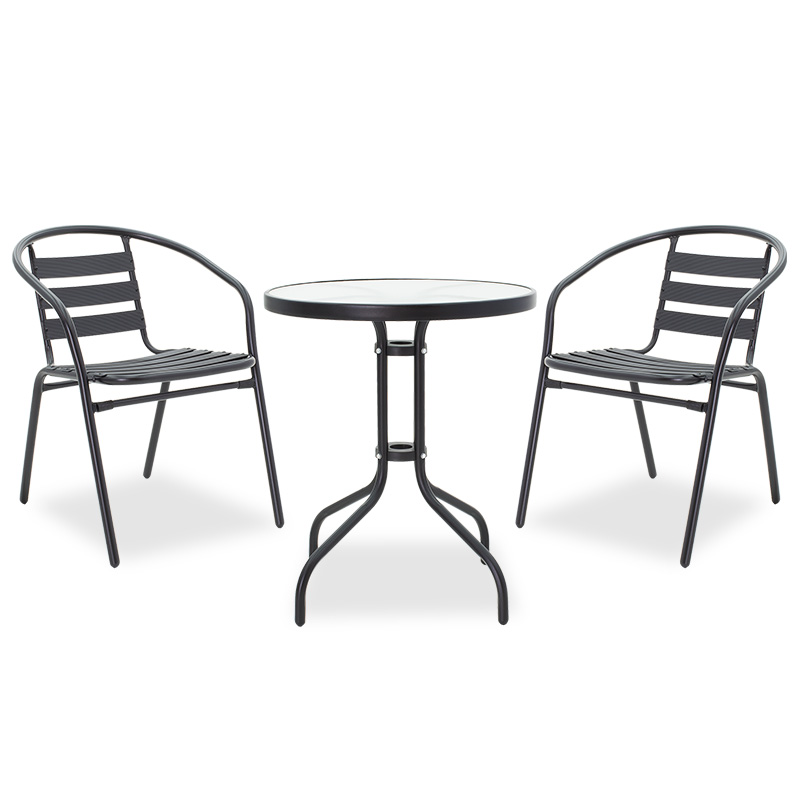 Τραπεζαρία Watson-Tade pakoworld σετ 3τεμ μέταλλο μαύρο-γυαλί Φ60×70εκ