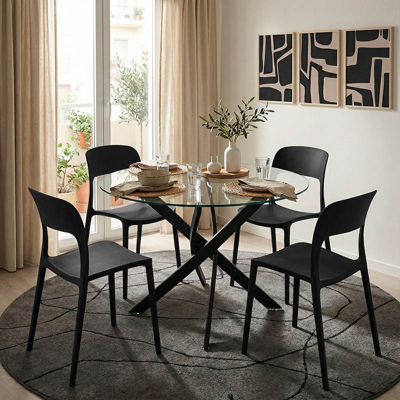 Τραπέζι Antoro pakoworld γυαλί και μεταλλικά πόδια σε μαύρη απόχρωση Φ80×75εκ