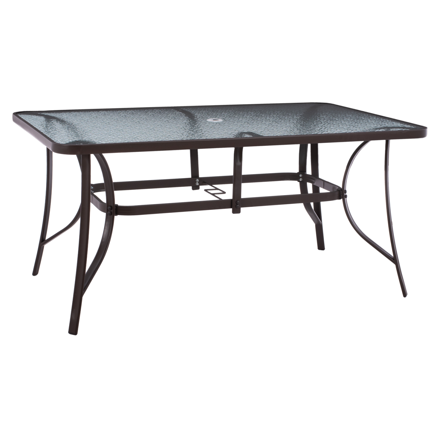 Τραπέζι μεταλλικό εξωτερικού χώρου σε καφέ απόχρωση με ενσωματωμένο τζάμι ασφαλείας (secure).