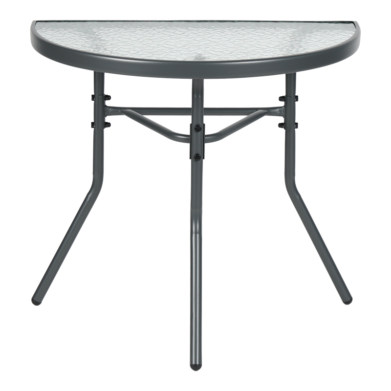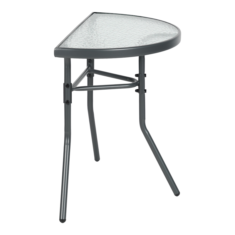Μετατρέψτε το μικρό σας μπαλκόνι στην αγαπημένη σας γωνιά χαλάρωσης! Το ημικυκλικό τραπέζι Bion είναι ο τέλειος συνδυασμός στυλ και λειτουργικότητας. Ο έξυπνος σχεδιασμός του σάς επιτρέπει να το τοποθετήσετε ακριβώς πάνω στον τοίχο, δημιουργώντας μια φιλόξενη γωνιά για τον πρωινό σας καφέ ή το απογευματινό σας ποτό, χωρίς να θυσιάσετε πολύτιμο χώρο. Η ανθεκτική του κατασκευή με μεταλλικό σκελετό και γυάλινη επιφάνεια το καθιστά ιδανικό για όλη τη διάρκεια του χρόνου.