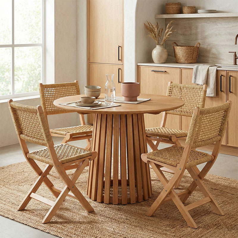 Τραπέζι Kenda I pakoworld mindi ξύλο σε φυσική απόχρωση Φ80×75εκ