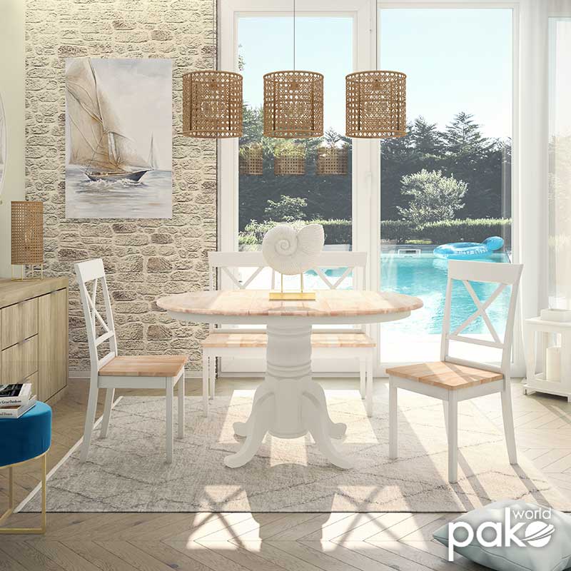 Tραπέζι Lars pakoworld επεκτεινόμενο ξύλο-MDF λευκό-φυσικό Φ100(+38)x100x75εκ