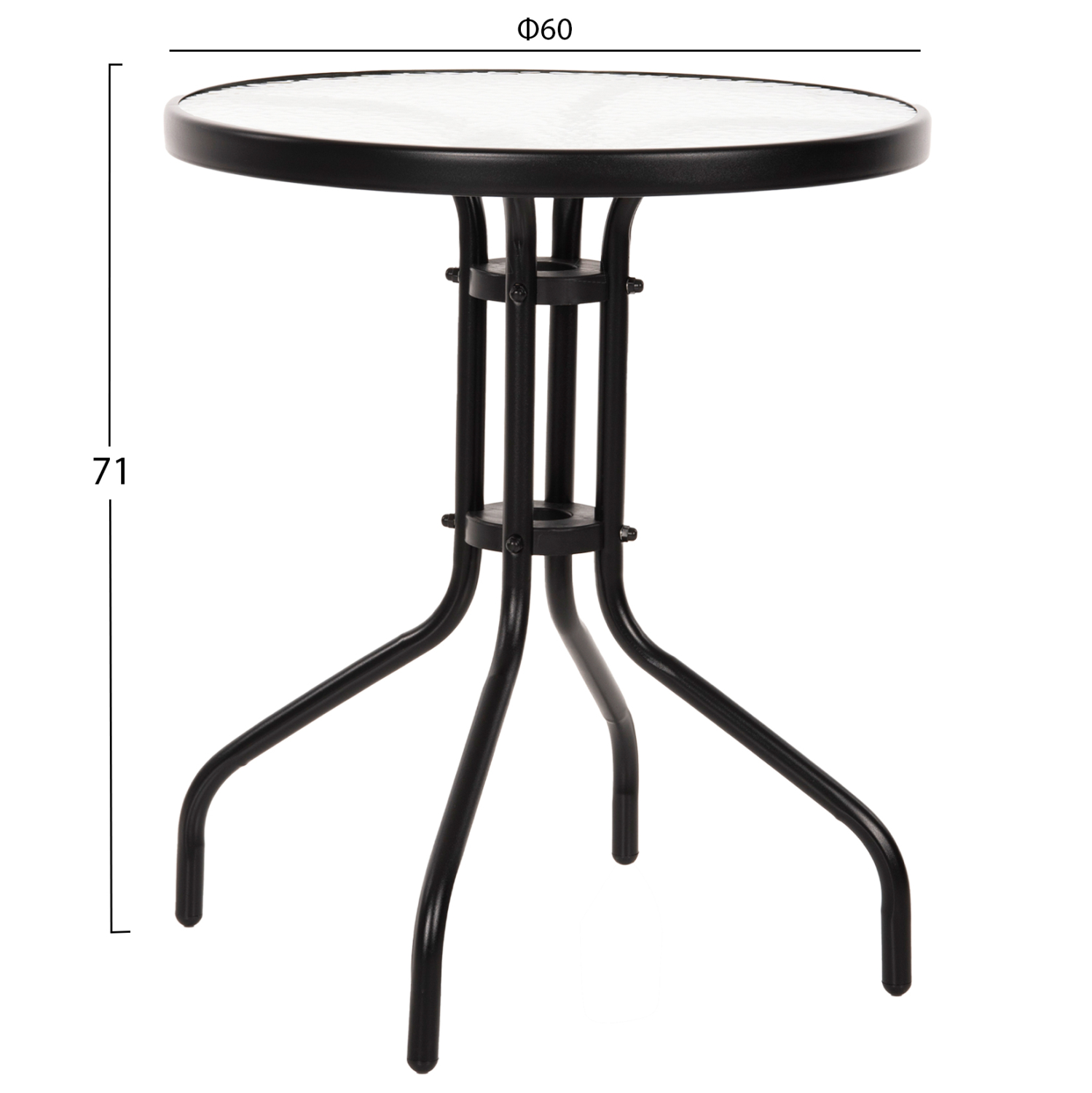ΗΜ5079.03 ΤΡΑΠΕΖΙ ΣΤΡΟΓΓΥΛΟ γυάλινο—–Το LIMA είναι ένα στρογγυλό τραπέζι με επιφάνεια από ημιδιάφανο γυαλί ασφαλείας και μεταλλικά πόδια σε μαύρο χρώμα. Η γυάλινη επιφάνεια στηρίζεται σε έναν κυκλικό μεταλλικό «δακτύλιο» ο οποίος με την σειρά του στηρίζεται στην διάταξη των ποδιών. Ένα όμορφο και στιβαρό τραπέζι που θα ομορφύνει τον εξωτερικό σας χώρο.