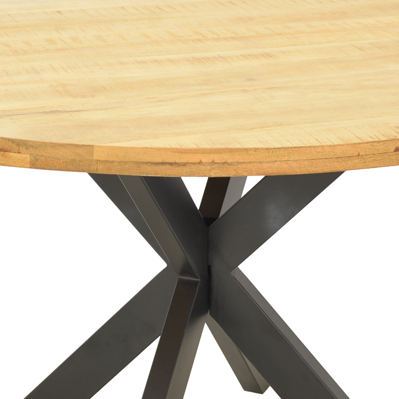 Τραπέζι Royalty pakoworld μασίφ ξύλο mango 4εκ σε φυσική απόχρωση-πόδι μεταλλικό μαύρο Φ130×77εκ