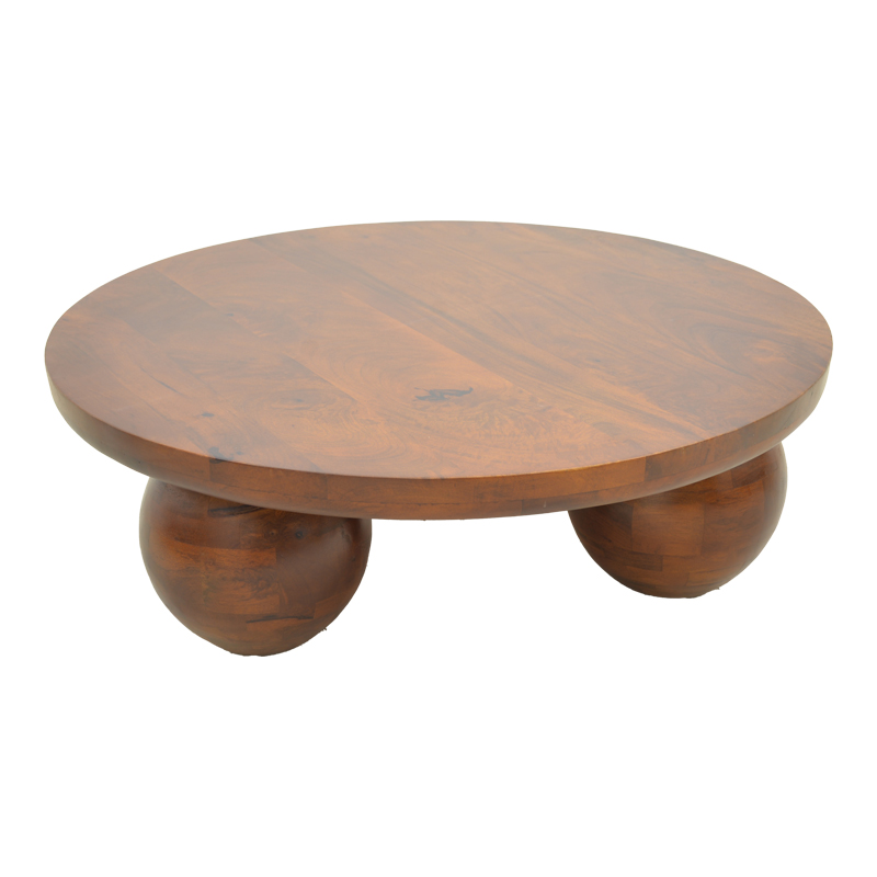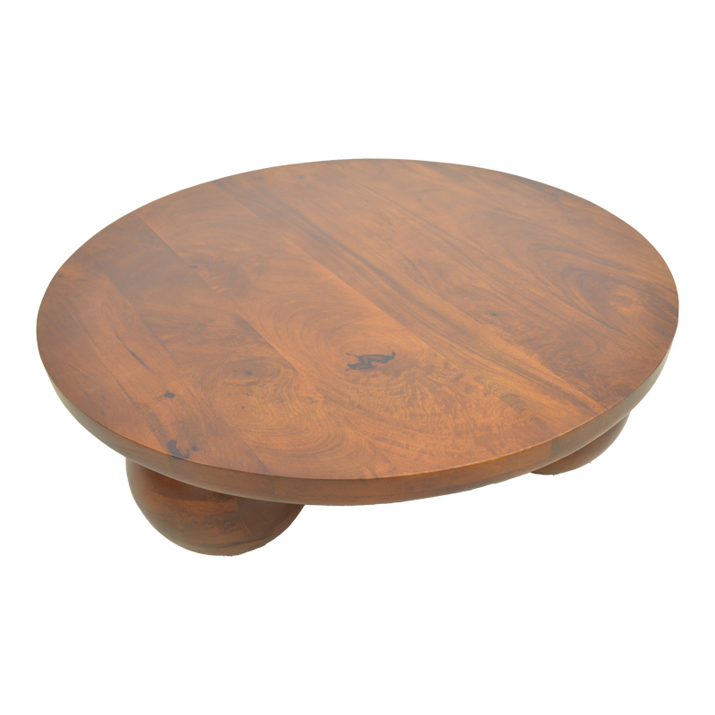 Τραπέζι σαλονιού Fedena pakoworld μασίφ μάνγκο ξύλο καρυδί Φ90×30εκ
