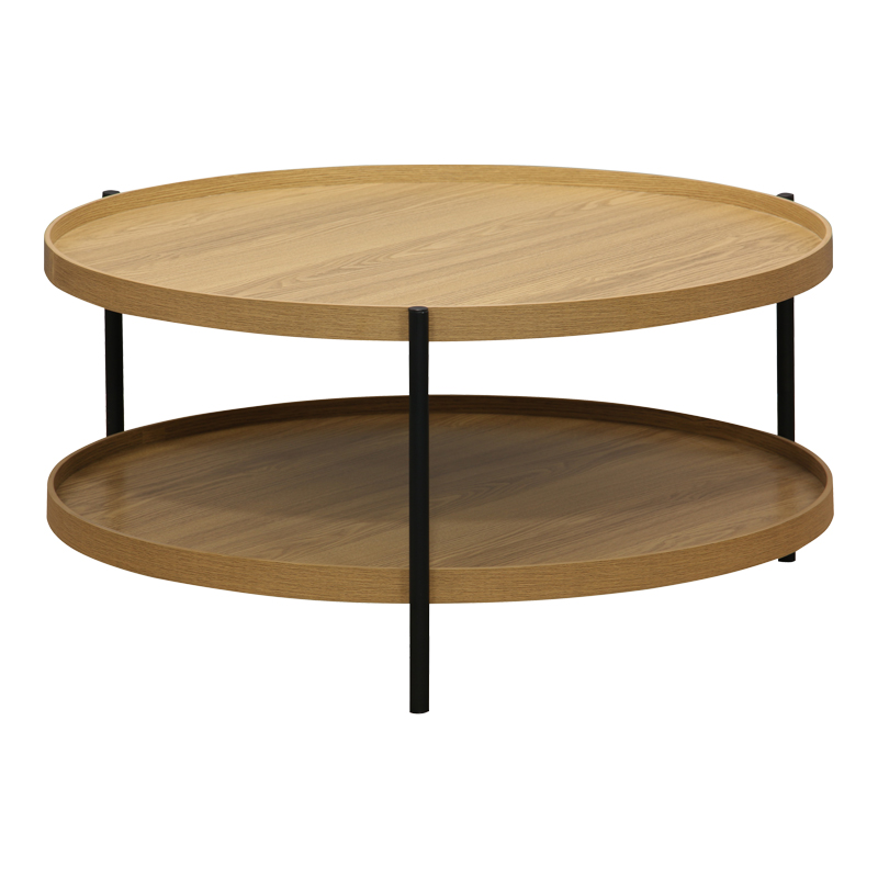 Τραπέζι σαλονιού Portogie pakoworld mdf φυσικό-μέταλλο μαύρο Φ80×40εκ