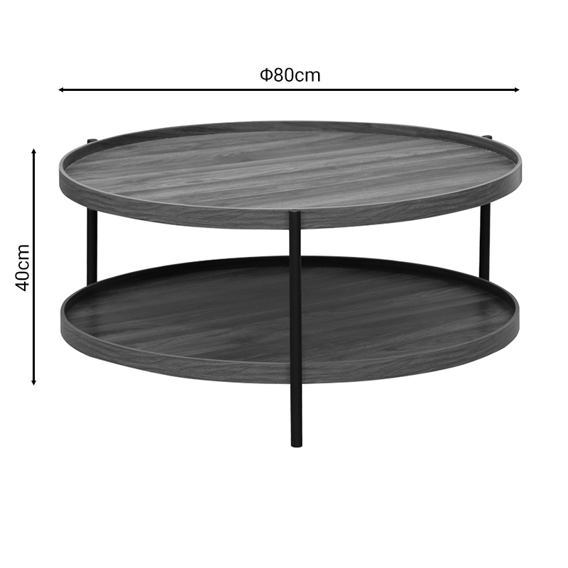 Τραπέζι σαλονιού Portogie pakoworld mdf καρυδί-μέταλλο μαύρο Φ80×40εκ