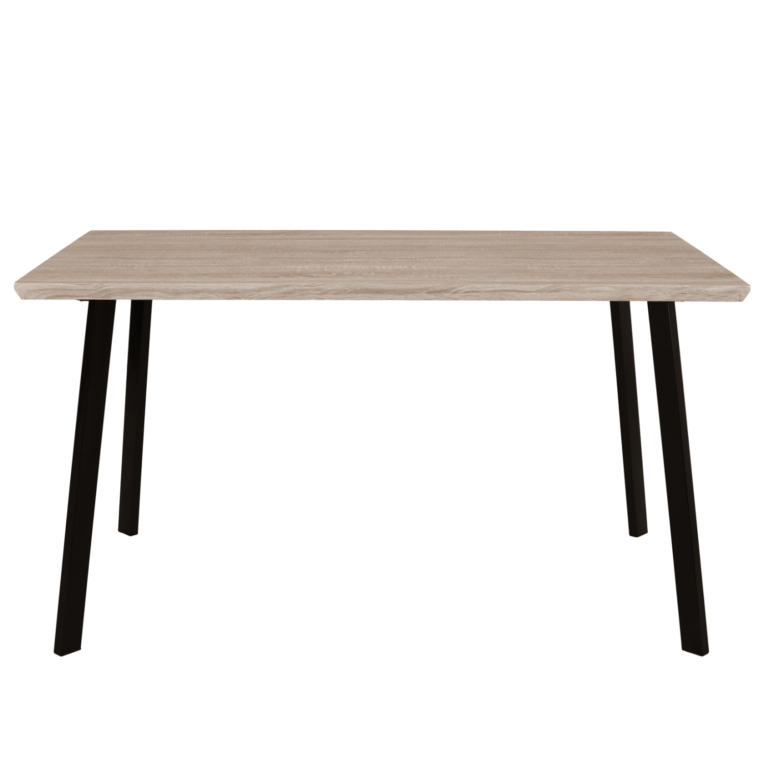 Τραπέζι τραπεζαρίας OFIRA με χρωματισμό επιφάνειας Sonoma και χρωματισμό βάσης και ποδιών μαύρο. Πρόκειται για ένα ελκυστικό και μοντέρνο τραπέζι με στρογγυλεμένες άκρες και φαλτσαριστό κατέβασμα (προς τα μέσα) στις άκρες περιμετρικά. Είναι μια καταπληκτική λύση για κάθε σπίτι που ακολουθεί minimal διακόσμηση.