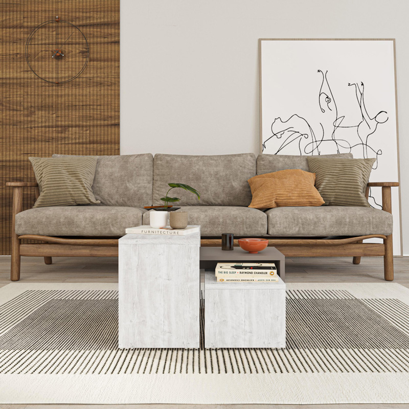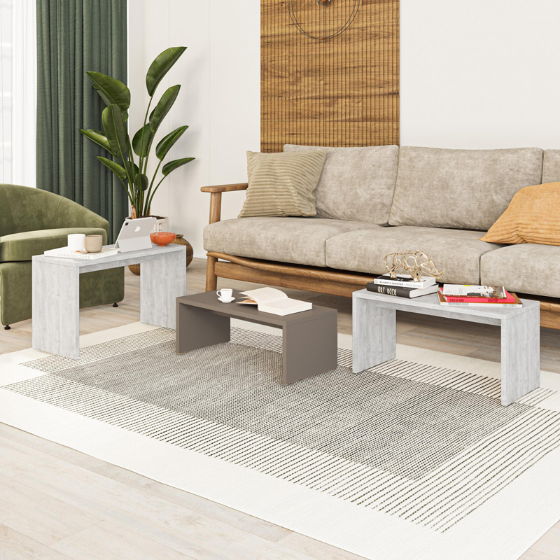 - Τα τρία τραπέζια μπορούν να χρησιμοποιηθούν μαζί ως ένα μεγάλο τραπέζι σαλονιού ή ξεχωριστά ως βοηθητικά τραπεζάκια.