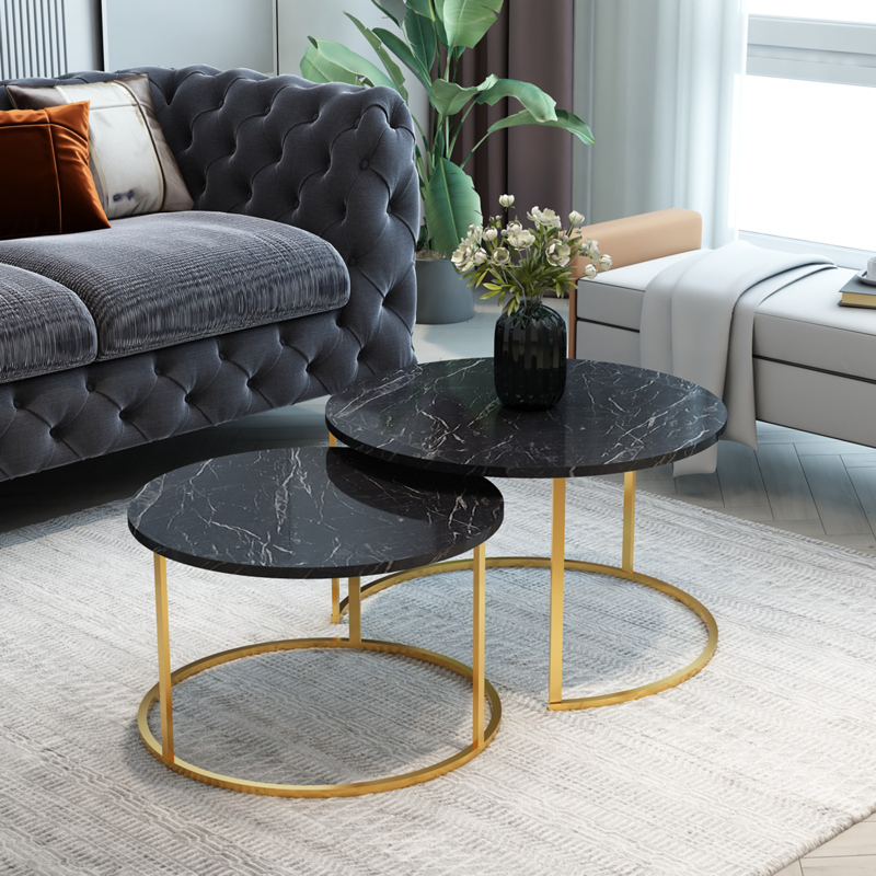 Τραπέζια σαλονιού Solme pakoworld σετ 2τεμ μαύρο μάρμαρου μελαμίνης-χρυσό μέταλλο