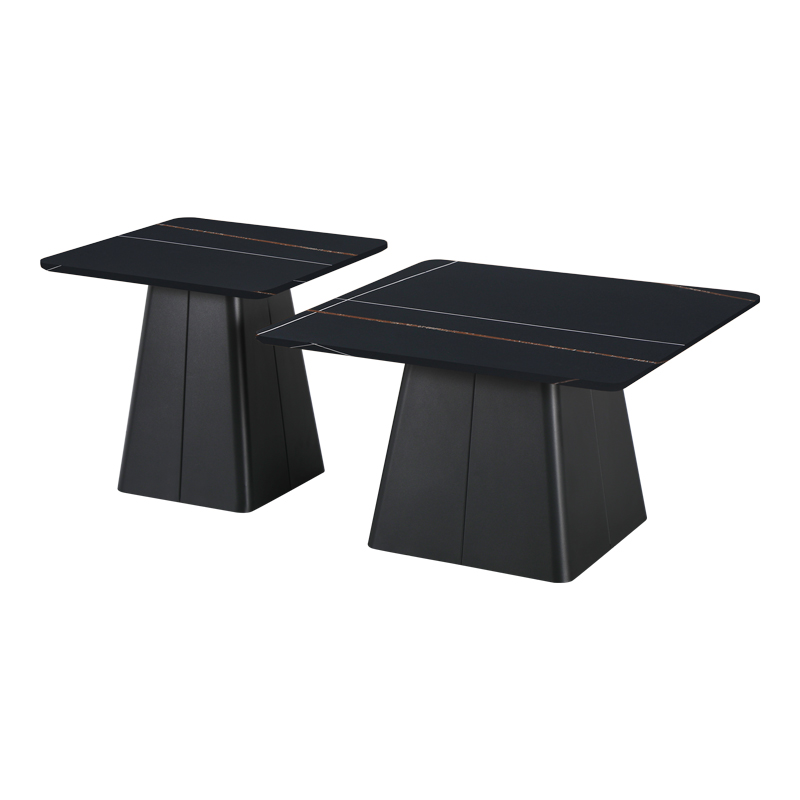 Τραπέζια σαλονιού Square pakoworld σετ 2 τεμ μέταλλο-sintered stone σε μαύρο μαρμάρου