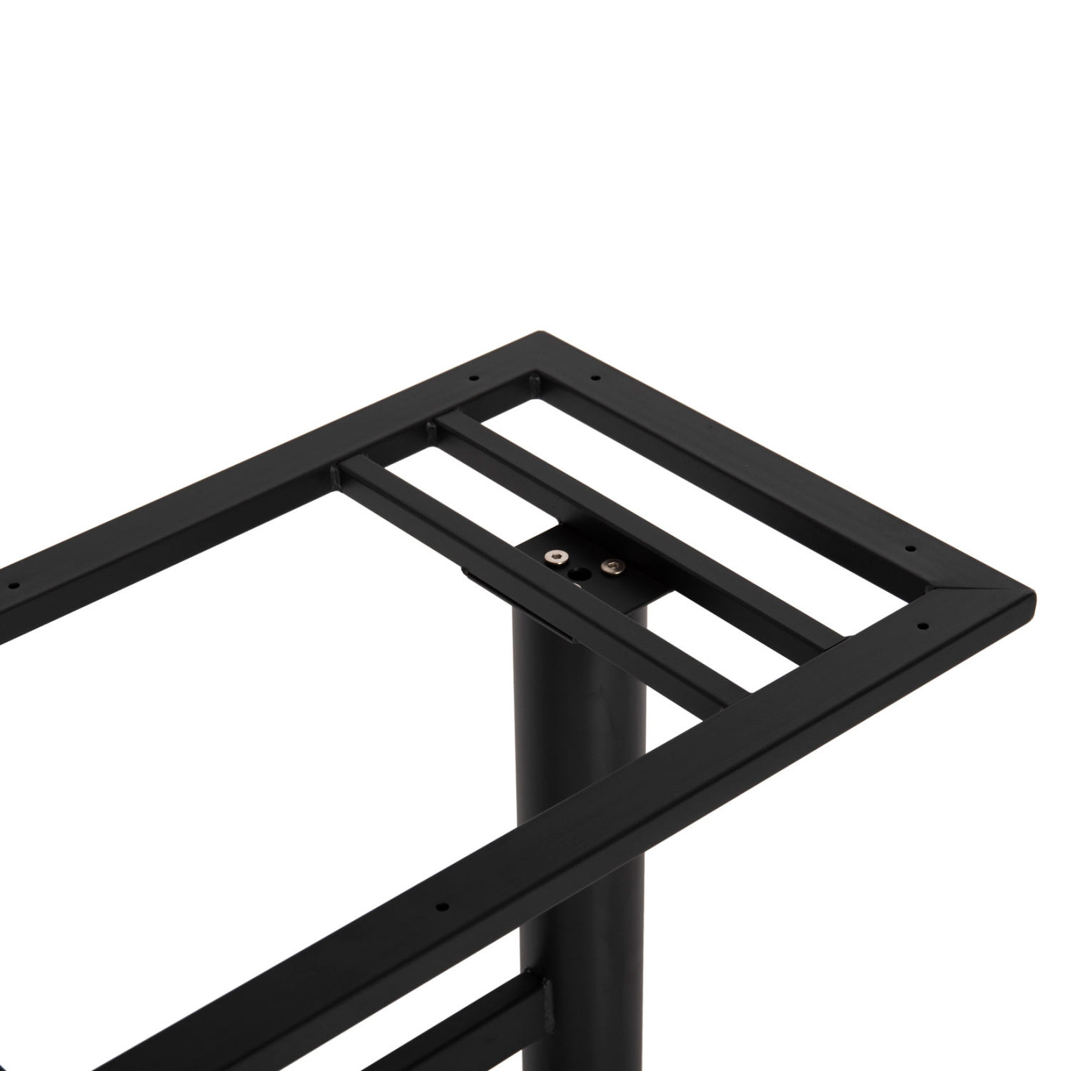 Η ΗΜ479.01 είναι βάση μεσαίου ύψους για τραπέζι bar σε ΜΑΥΡΟ χρώμα. Αυτή η βάση είναι μεταλλική με 2 κολώνες που στηρίζονται σε δύο ελαφρώς αψιδωτά πέλματα. Αυτές οι κολώνες καταλήγουν στην βάση στήριξης της επιφάνειας που είναι ορθογώνια. Επίσης, στο κάτω μέρος της διαθέτει ρυθμιστές ύψους (ρεγουλατόρους). Ιδανική πρόταση για συνδυασμό με επιφάνειες σχεδόν κάθε είδους, όπως βερσαλίτες, HPL, MDF, κτλ.