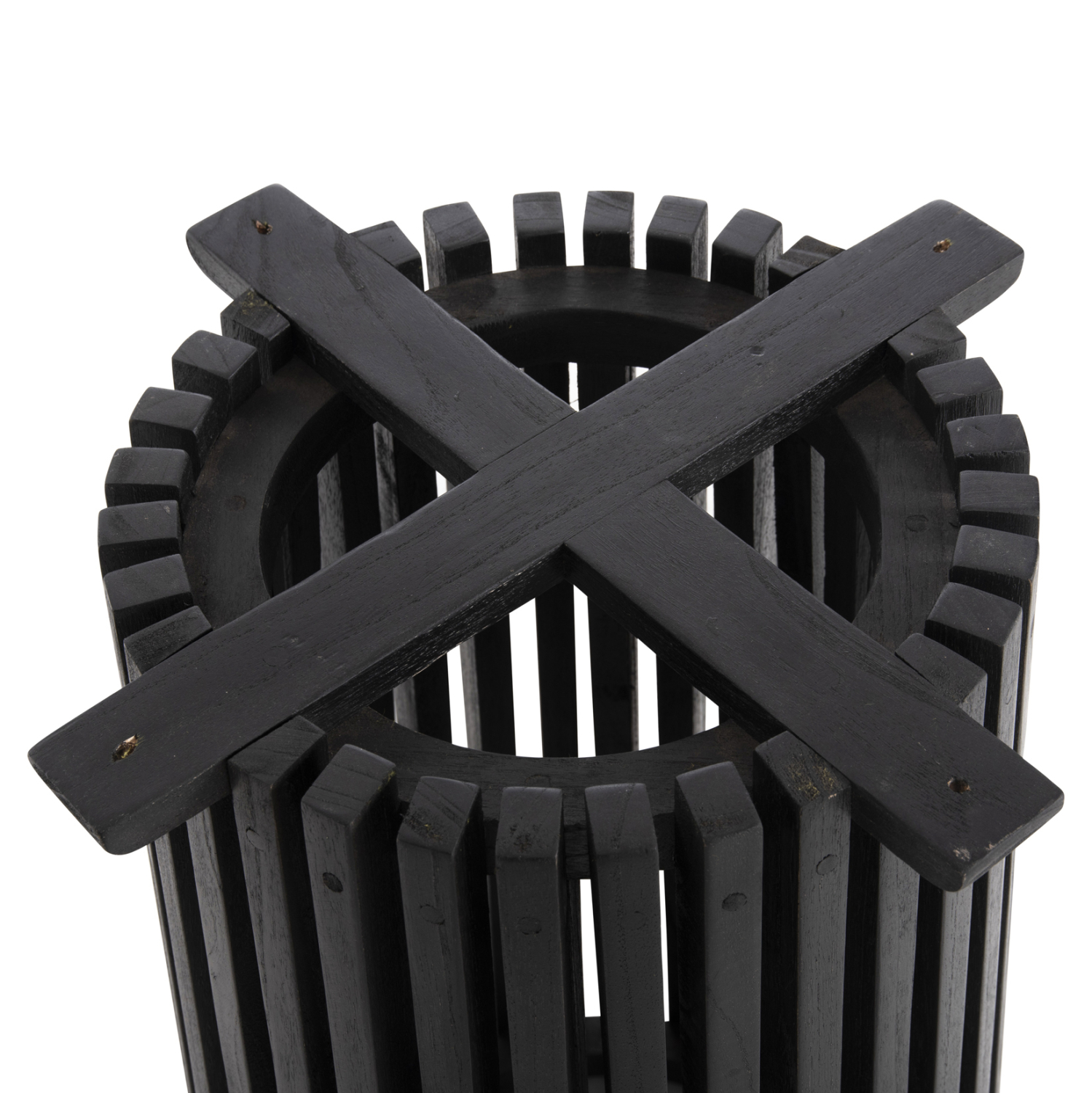 Η FRANTZ είναι βάση/πόδια για στρογγυλό τραπέζι, με ικανοποιητικές διαστάσεις σε έντονο ΜΑΥΡΟ χρώμα. Αυτή η βάση είναι μια ξύλινη κατασκευή με πολλές δοκούς σε κυκλική-κωνική διάταξη που ενώνονται μεταξύ τους με δακτυλίους επάνω και κάτω στην εσωτερική πλευρά.