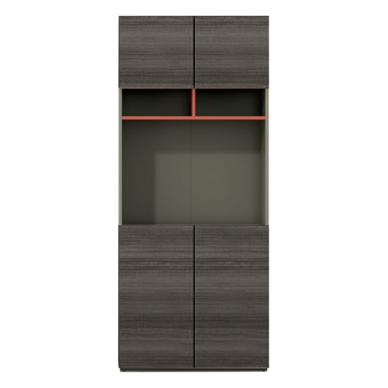 Επαγγελματική βιβλιοθήκη γραφείου από την σειρά Lux Series κατασκευασμένη από μελαμίνη υψηλής ποιότητας, σε μόκα και σταχτί ανάγλυφη απόχρωση και πορτοκαλί λεπτομέρειες.