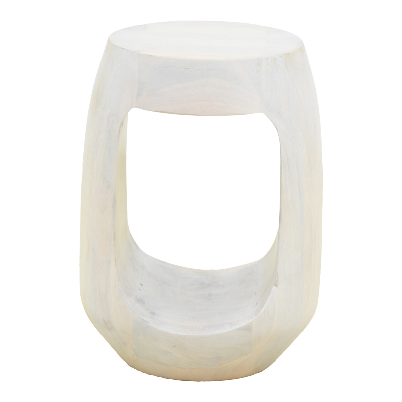 Βοηθητικό τραπέζι Lenora pakoworld μασίφ μάνγκο ξύλο λευκό Φ33×45εκ