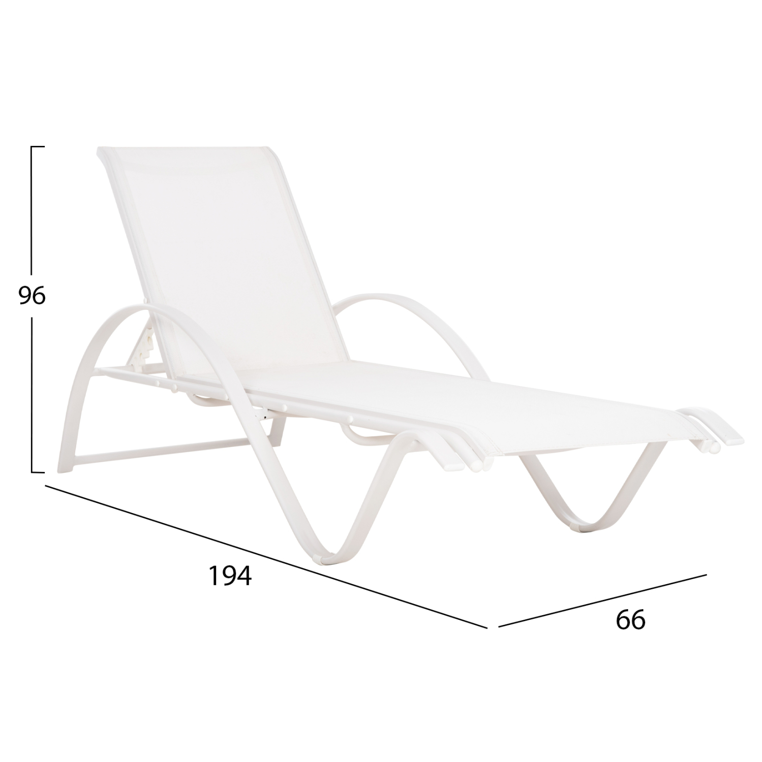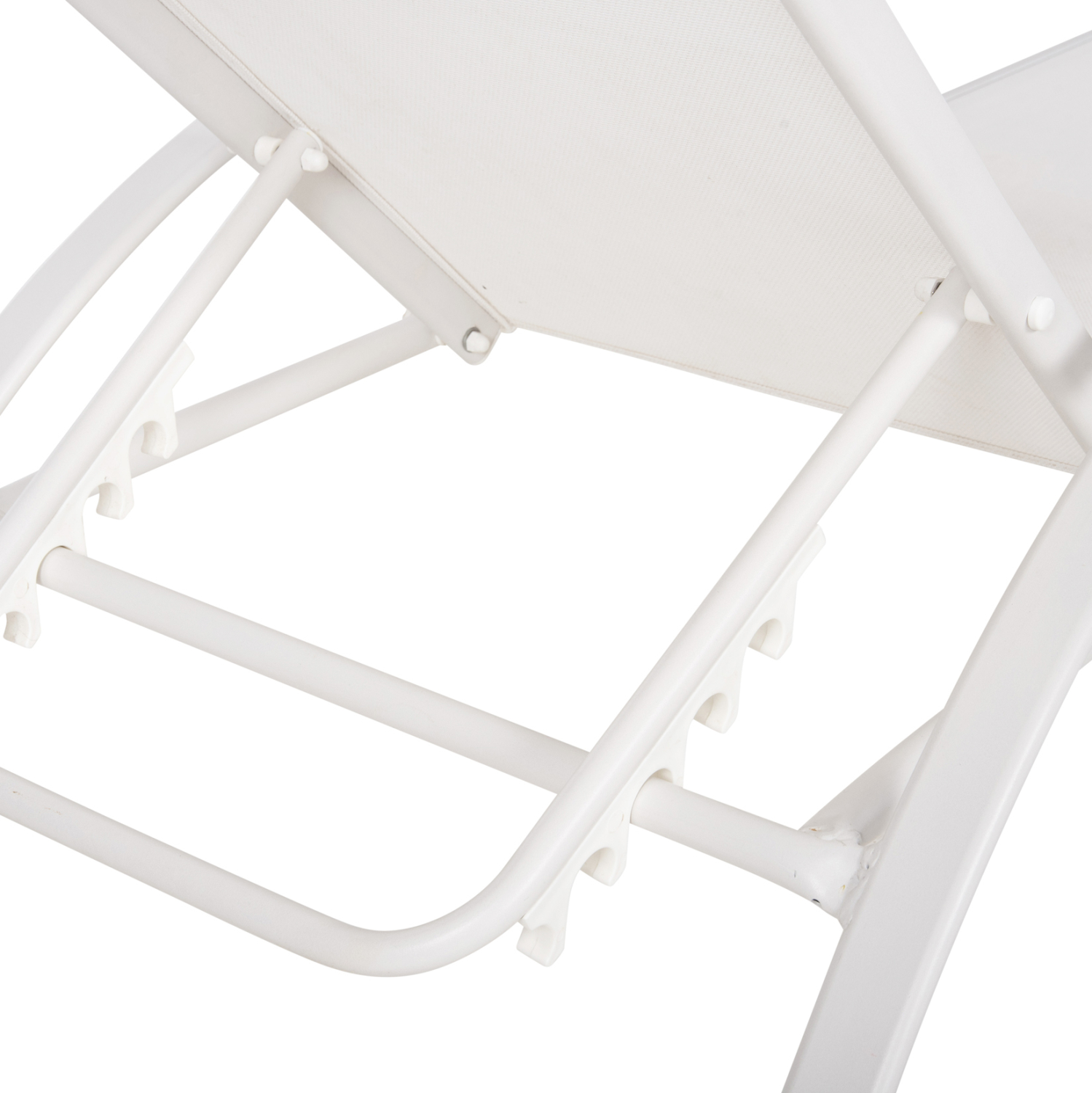 Επαγγελματική ξαπλώστρα από σκελετό αλουμινίου σε ΛΕΥΚΗ απόχρωση και textline σε ΛΕΥΚΟ χρώμα.