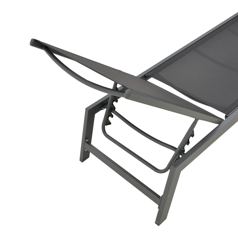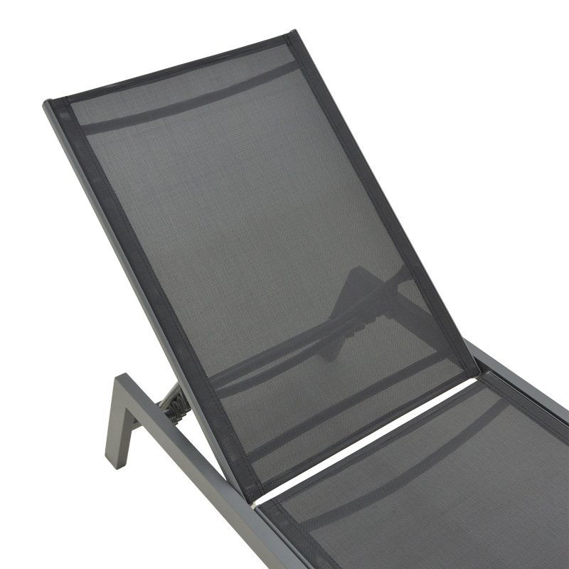 Ξαπλώστρα Boka pakoworld ανθρακί αλουμίνιο και textilene σε μαύρη απόχρωση 60x192x31εκ