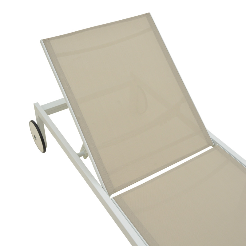 Ξαπλώστρα Mailo pakoworld λευκό αλουμίνιο και textilene σε μπεζ απόχρωση 71x206x30εκ